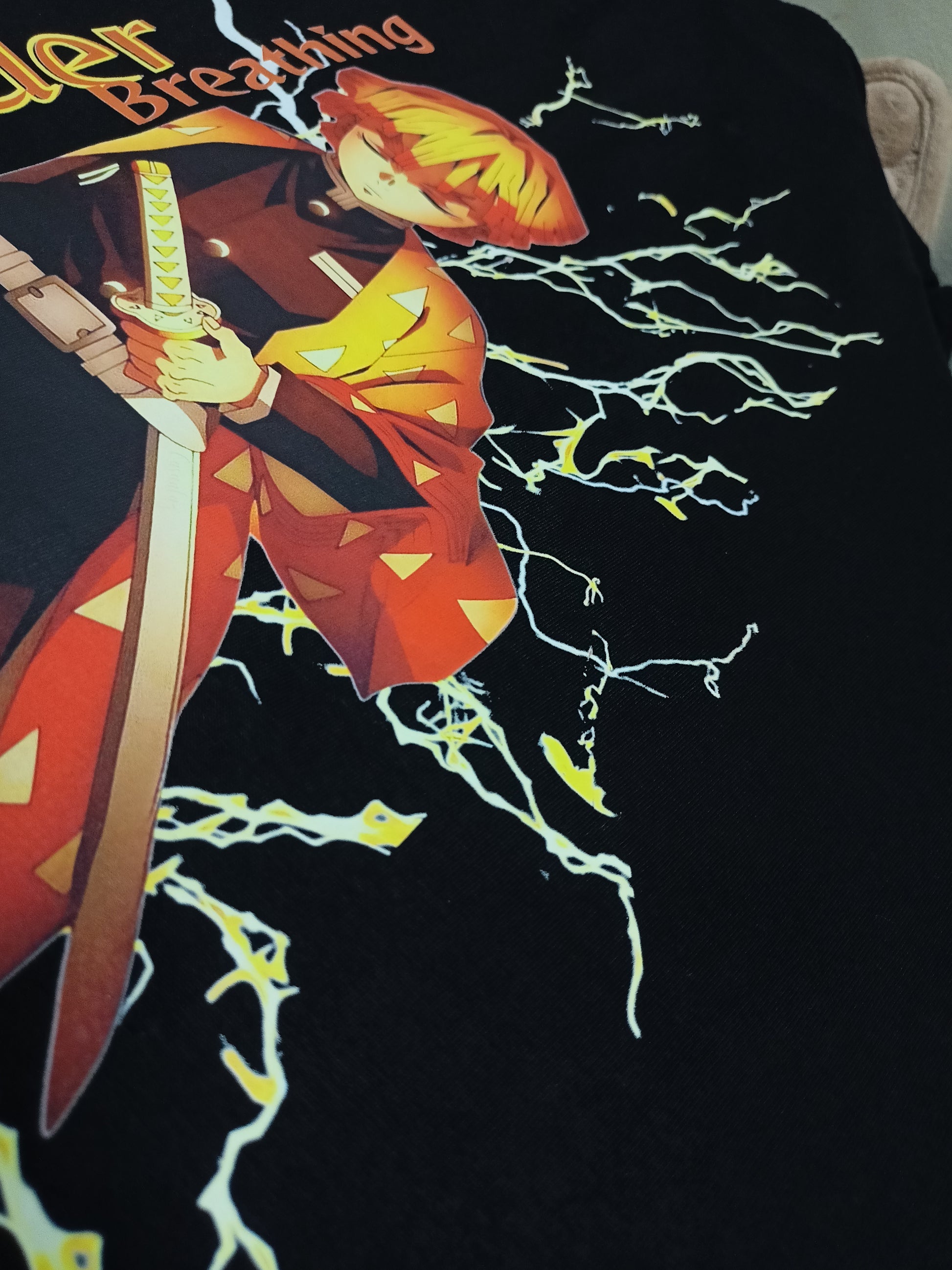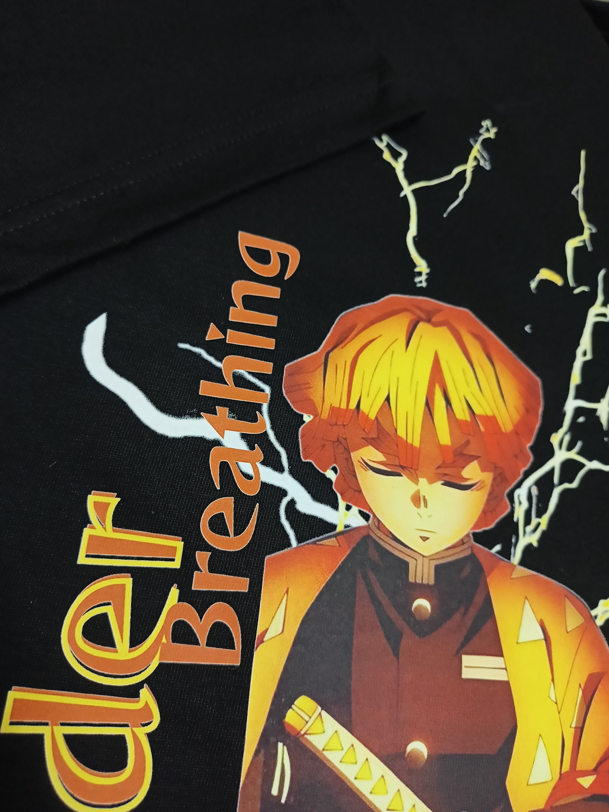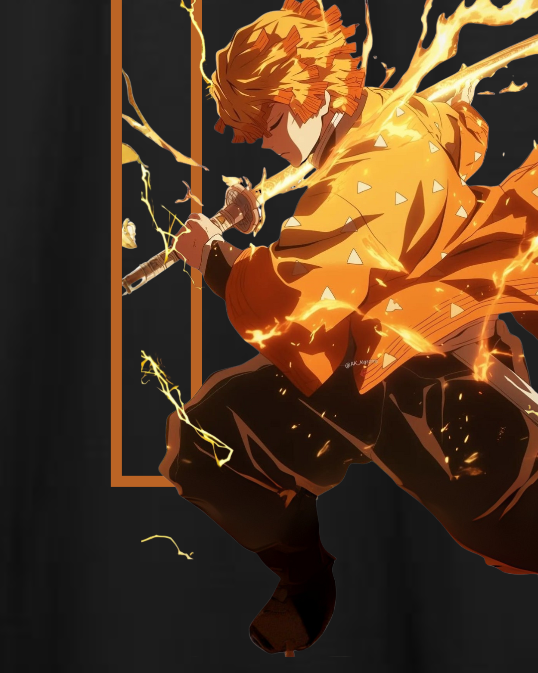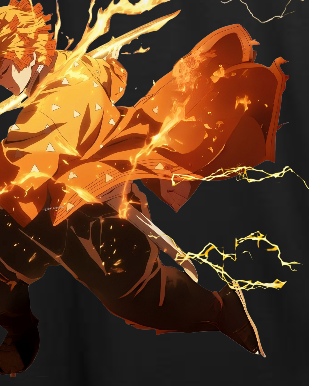 Embrace the lightning-fast spirit of Zenitsu with this premium Regular Cotton T-Shirt . Featuring his iconic Thunder Breathing, First Form stance, this design captures the contrast between his fear and his hidden, explosive power. A perfect piece for those who know courage isn’t the absence of fear—it’s acting in spite of it.